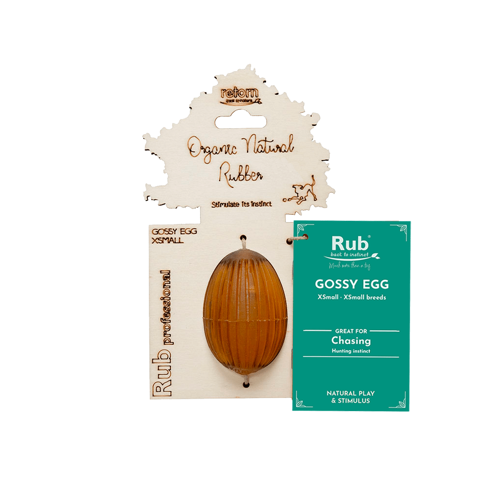 Nuestro Juguete para Perros - Rub Gossy Egg está hecho 100% de Resina Orgánica Natural. Puedes rellenarlo con premios, snacks o pienso para incentivar el juego, la inteligencia y la persecución. Úsalo para entretenerlo y mejorar su bienestar y día a día.
